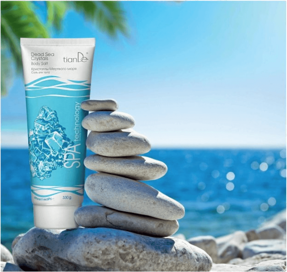 A Holt-tengeri kristály testápoló só fő alkotó eleme az egyedülálló holt-tengeri sókristályok. A selymes textúrájú só rendkívül erős fiatalító és regeneráló hatással rendelkezik. Elnyeli a salak és méreganyagokat, serkenti az anyagcsere folyamatokat, feltölti a bőrt ásványi anyagokkal.