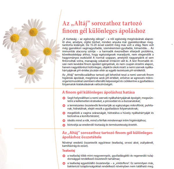 – a természetes összetevők fenntartják az egészséges mikroflórát, hidratálnak és elejét veszik a gyulladásos folyamatoknak;;