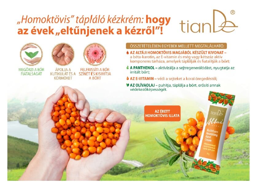 „Homoktövis” tápláló kézkrém: hogy az évek „eltűnjenek a kézről”!