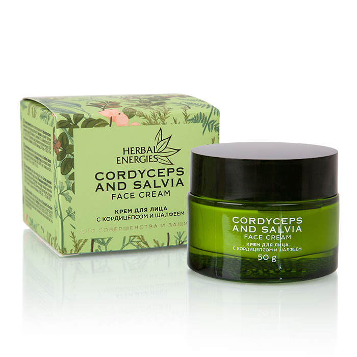 Arckrém kínai hernyógombával és zsályával – öregedés elleni hatás és kettős védelem. A zsálya által tartalmazott fitoösztrogének megőrzik a bő fiatalságát, meggátolják az első apróbb ráncok kialakulását. A kínai hernyógomba és a zöld tea antioxidáns védelmet biztosít, tonizálnak, összehúzzák a pórusokat, meggátolván, a mitesszerek megjelenését és a gyulladások kialakulását.