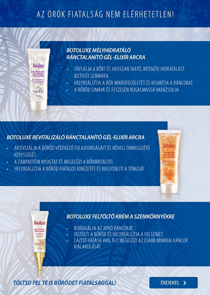 A gél-elixír aktív összetevői, feltöltve az üres tért a felhámsejtekben, valósággal belülről simítja ki a ráncokat, ez által varázsolva simává, feszessé és rugalmassá a bőrt.